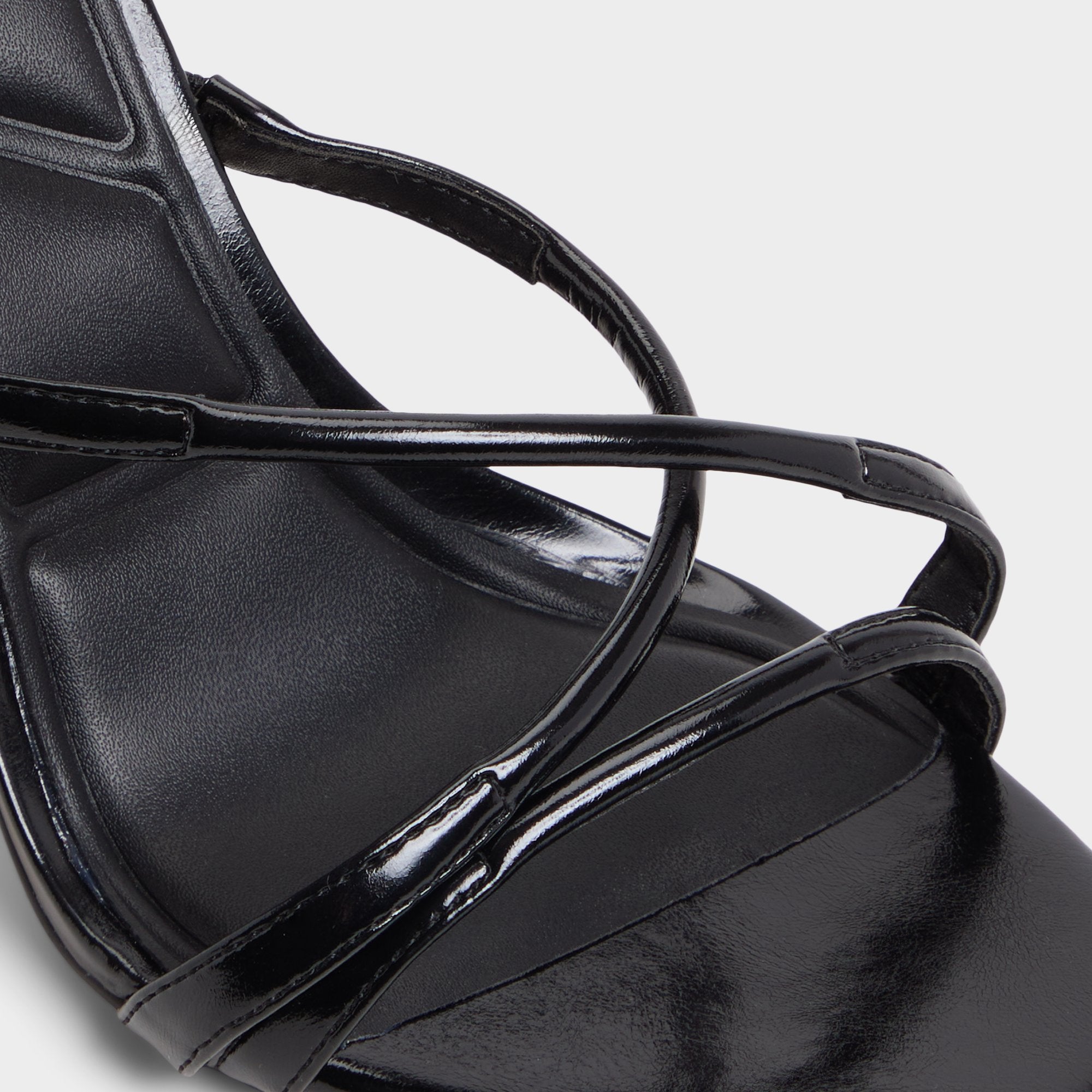 Midnight-sleek leather straps trace barely-there lines across your instep, while a sharply sculpted stiletto lifts the look into after-dark altitude, keeping every step light, decisive, and a little dangerous all night long. Slip them next to cropped tux pants for gallery openings, or ground a satin slip dress when rooftop cocktails blur into sunrise cab rides.